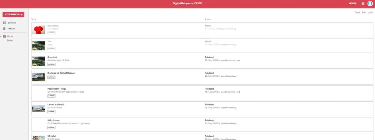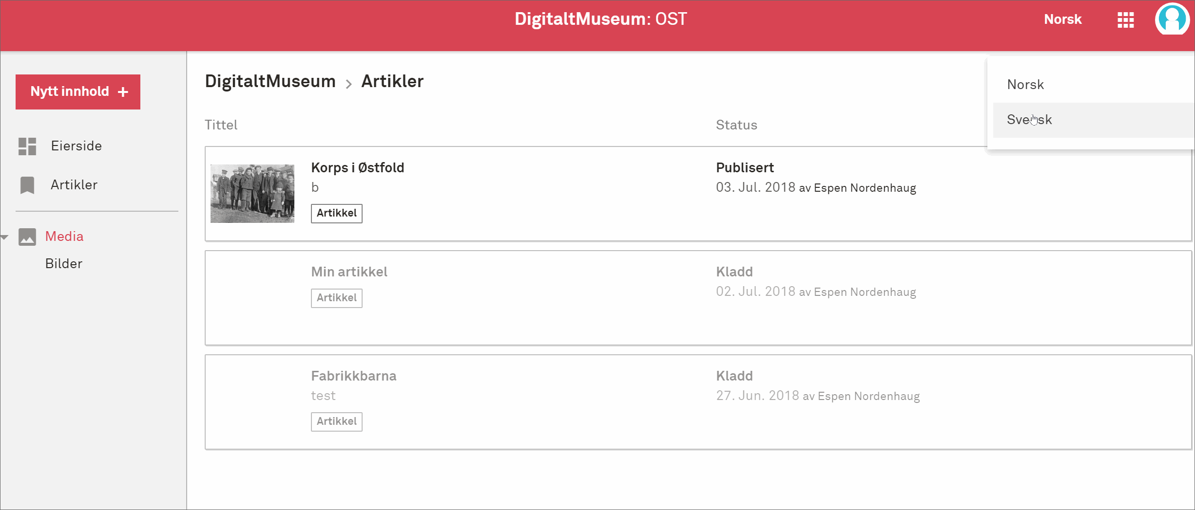 - You can switch between the Norwegian and Swedish interfaces using the language switcher in the top right corner.
