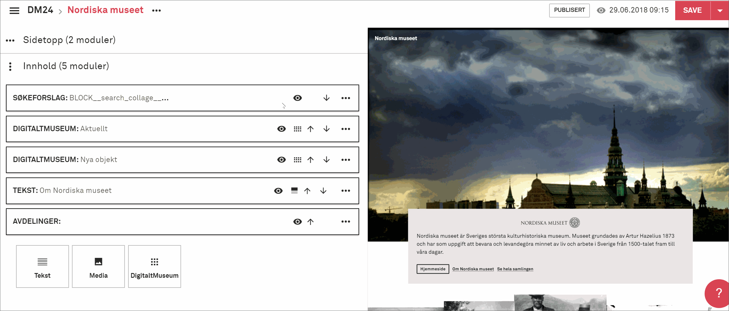 The Search Collage block is used to switch the search collage on or off. It is only applicable on the museum owner pages.